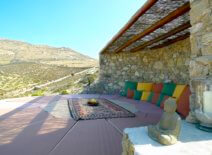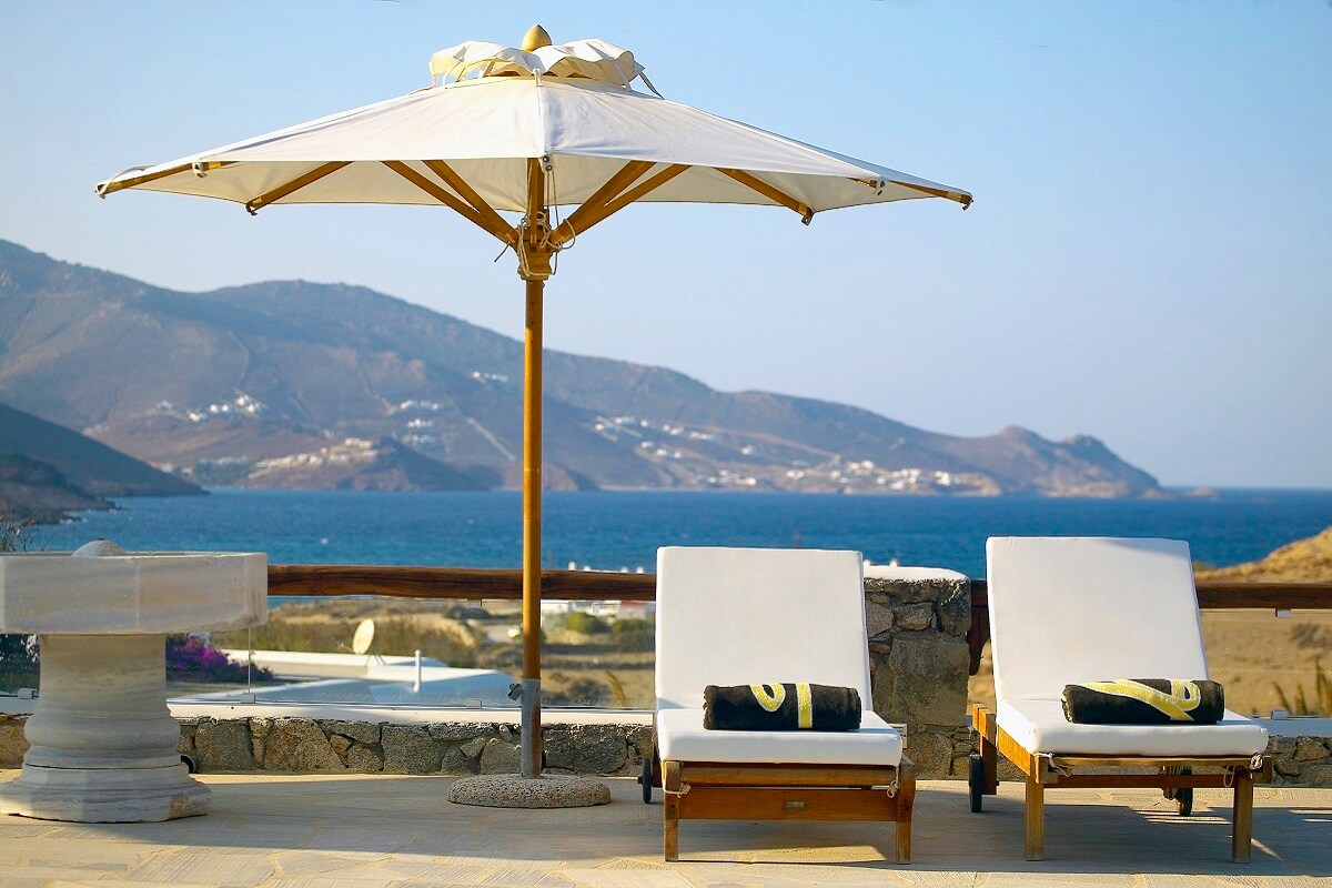 Located on the renowned island of Mykonos at the area of Ftelia with beach view with surrounding hills and mountains, set against a fantastic landscape and looking out over the Aegean Sea,Art Villa, imbues guests with good mood, positive energy, inner health and tranquility. Proud of its Feng Shui pedigree, the Villa pervades its guests with a unique feeling of well-being and relaxation.