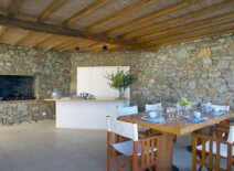 The outdoor areas consist of a beautiful pool, sunbeds, umbrellas, fountain, living areas, pool WC & shower and parking area for 3-4 cars. Outdoor dining area for 8-10 guests or more, with superb view and a cooking bench with a fridge.