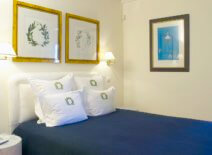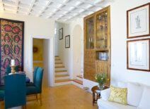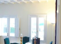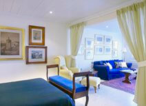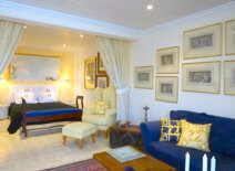 - 2nd bedroom (1st level): One bedroom with a King size bed, a private marble bathroom with bathtub and shower, an open plan sitting room and a dining area with a kitchenette; a card playing corner furnished with beautiful antique pieces and an authentic English card table. Only a drop away from the morning pool splash.