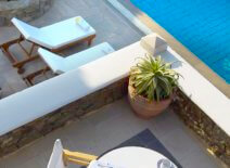 - 3rd bedroom (2nd level): Two separate bedrooms, one with a queen size bed and en-suite private marble bathroom and one with two single beds. Living room and kitchenette with a dining area. Private balcony with a picturesque sea and mountain view, for breakfast or sunset gazing.
