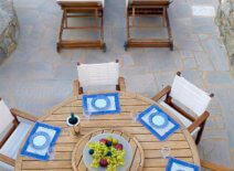 - 4th bedroom (3rd level): Bedroom with a queen size bed, Greek marble bathroom with shower. Fully equipped interior kitchen, living room with interior dining table. Private high point sea and mountain view veranda and a shaded sitting area.